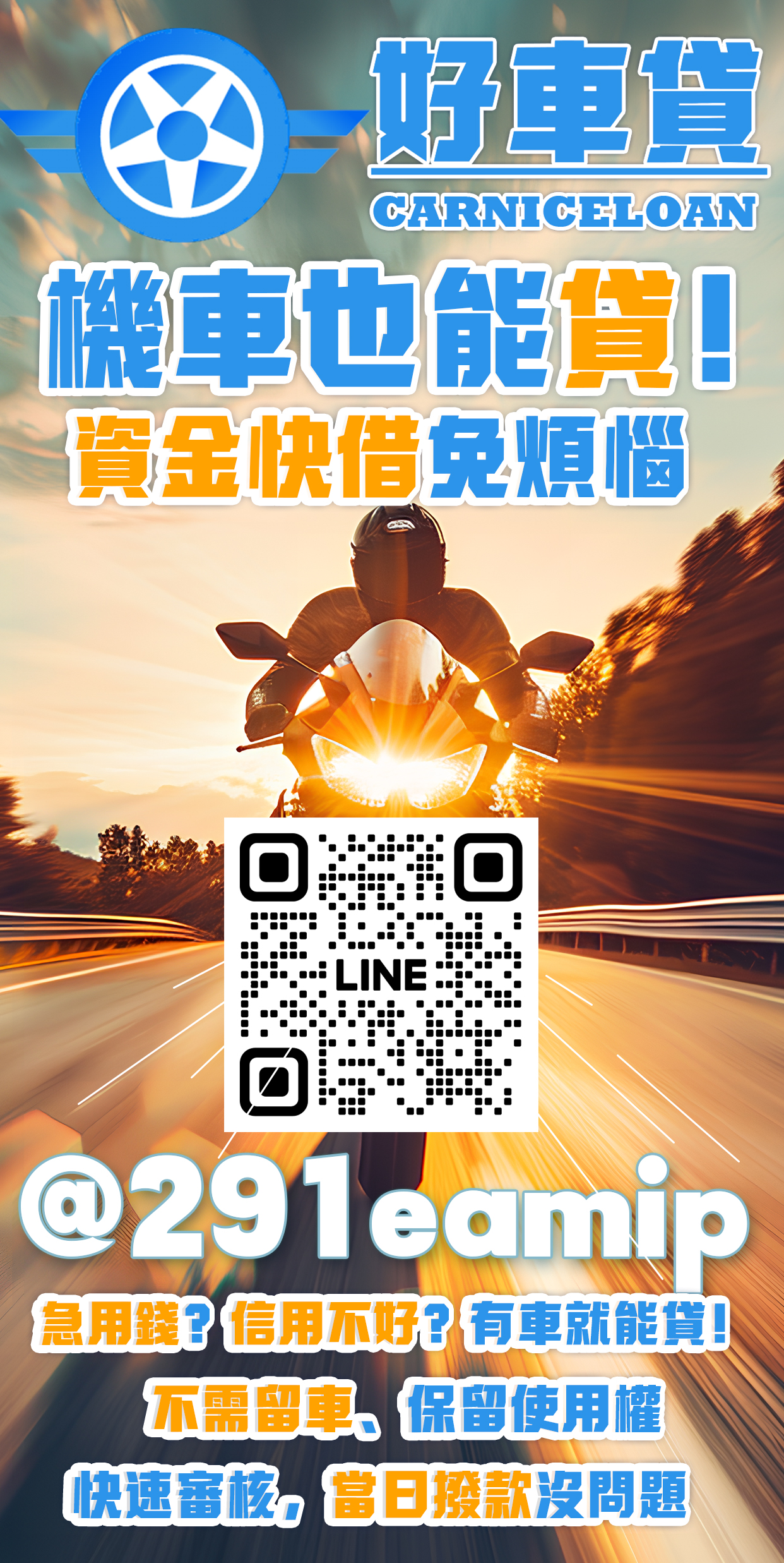 無論你是上班族、外送員、自營業者,機車貸款都是輕鬆解決資金困難的好幫手!